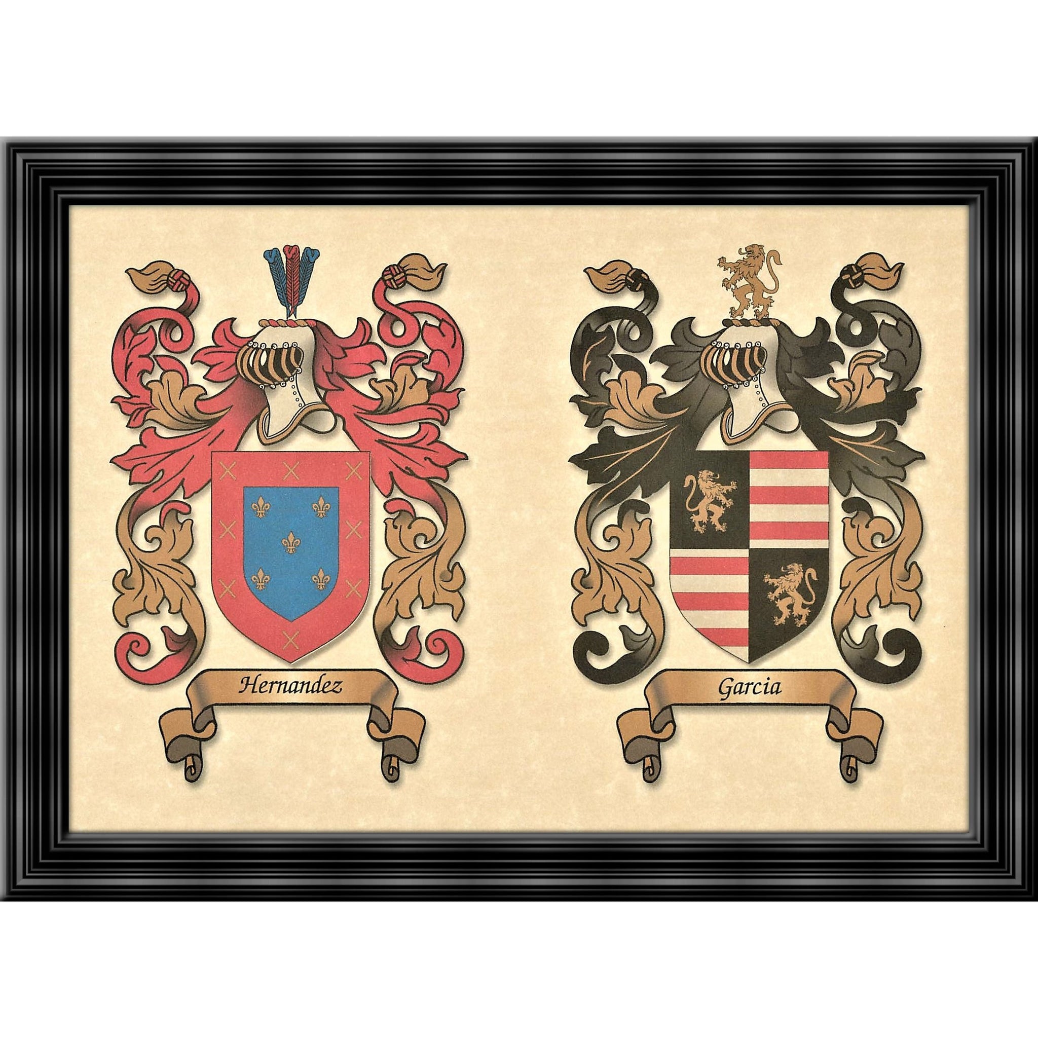 Two authentic Full color Family Coat of Arms/ Family Crests most commonly associated with your family's last name/surname